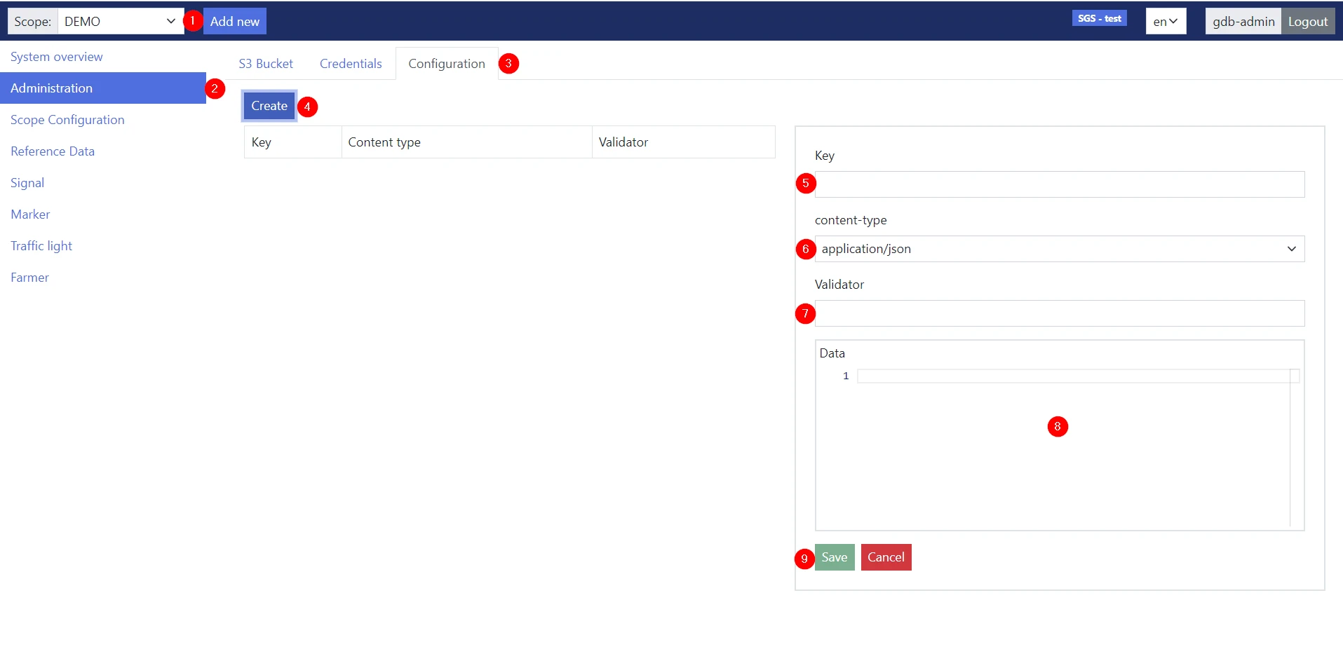 | Administration section | Allows you to: - provide the credentials that will be used to access to the secured S3 bucket that you created - provide the Sentinel Hub Client ID and Client Secret - manage the configurations of different applications and services. |