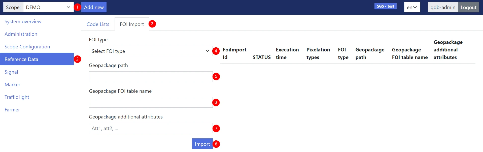 - In the Geopackage FOI table name field enter the name of the GeoPackage table with the reference data to import.