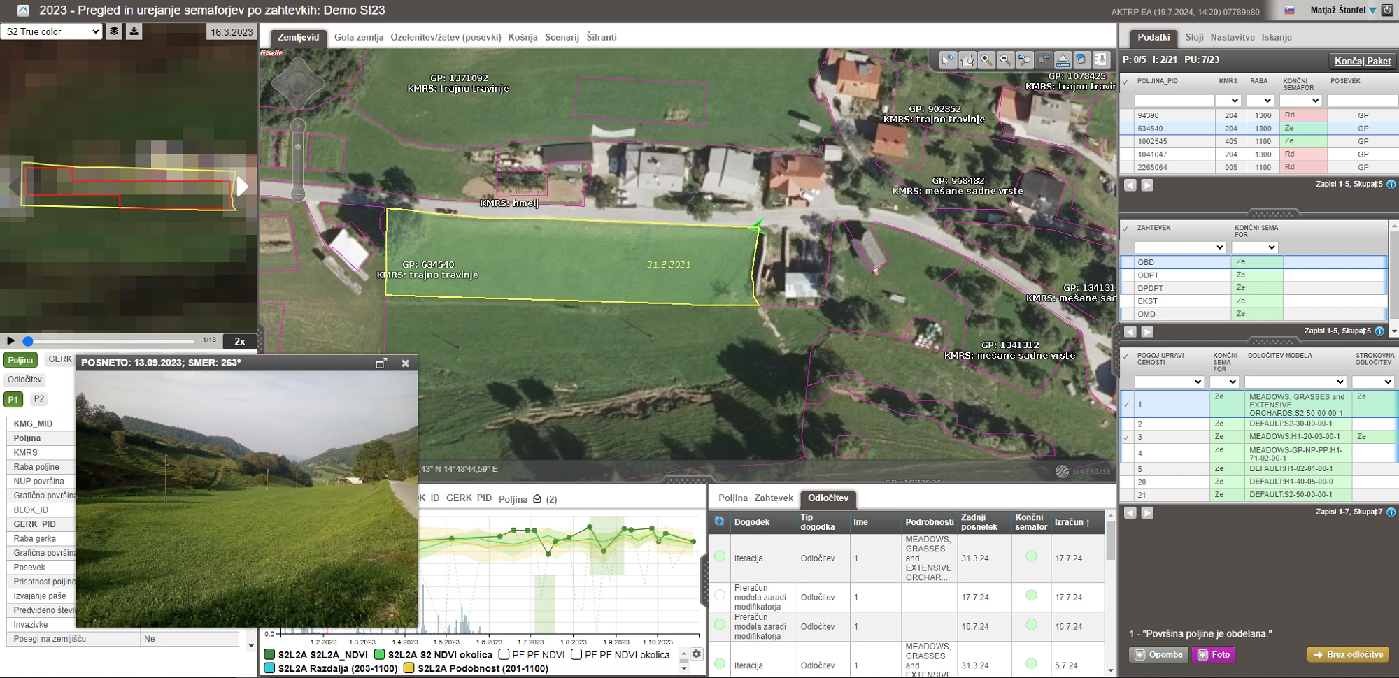 The Traffic Light (TL) Review module offers a graphical interface for expert analysis of computed signals, markers, and auxiliary data to determine whether agricultural parcels comply with CAP regulations. Based on the expert's decision, a traffic light status is assigned.