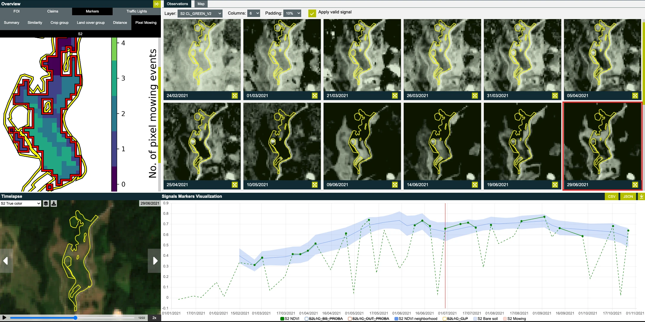 - Visual confirmation of mowing activity in satellite imagery